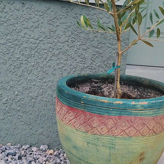 Evergreen, long-lived, beautiful fruit bearing ornamental with soft gray-green foliage. Potted in growing containers and are self-fruitful (produce both male and female flowers on the same tree). This variety is revered as both a table olive – for its mild, buttery & lightly fruity flavor – as well as an oil olive for its high oil concentration. Olives hang well on the tree & ripen at different intervals.